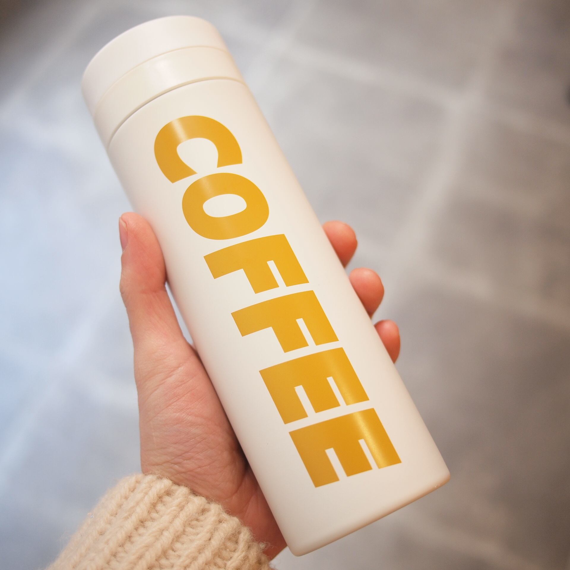 COFFEE・LATTE・MEGANEのロゴがインパクトのあるデザイン。